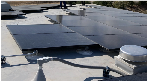A roof-mounted PV solar system will help to offset the electrical energy needed for heat pumps, lighting and plug loads, further reducing carbon emissions. Battery storage will help alleviate the electrical need when the sun is not shining.